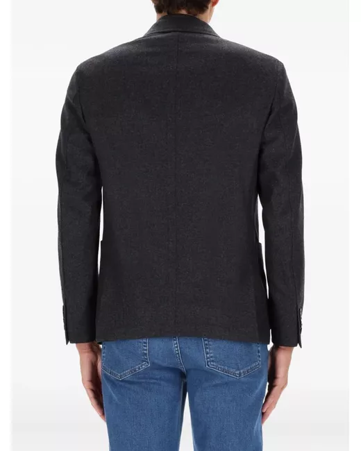 grey button fastening front patch pockets notched lapels long sleeves buttoned cuffs