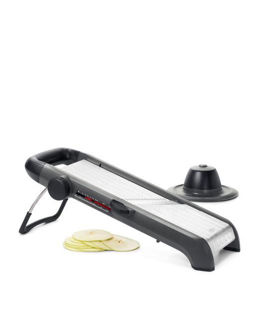 oxo brings ease and efficiency to every moment in the kitchen, and the label's Chef's Mandoline 2. 0 is a must-have for achieving professional results at home. Built with high-quality stainless steel, it offers multiple blade options and comes with a hand guard to ensure complete safety while you prep with confidence.