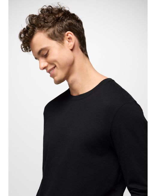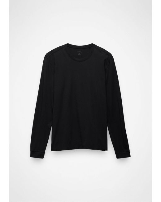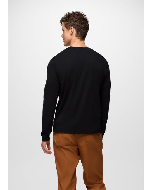 An essential long sleeve tee made from 100% Regenerative Organic Certified® Cotton. Made from 100% Regenerative Organic Certified® Cotton, this relaxed fit classic short sleeve is soft from the first wash, but won't fade when you wear it on repeat. The elevated basic is breathable to keep you comfortable all day. | Mens prAna Everyday Long Sleeve Tee in Black, Size Medium
