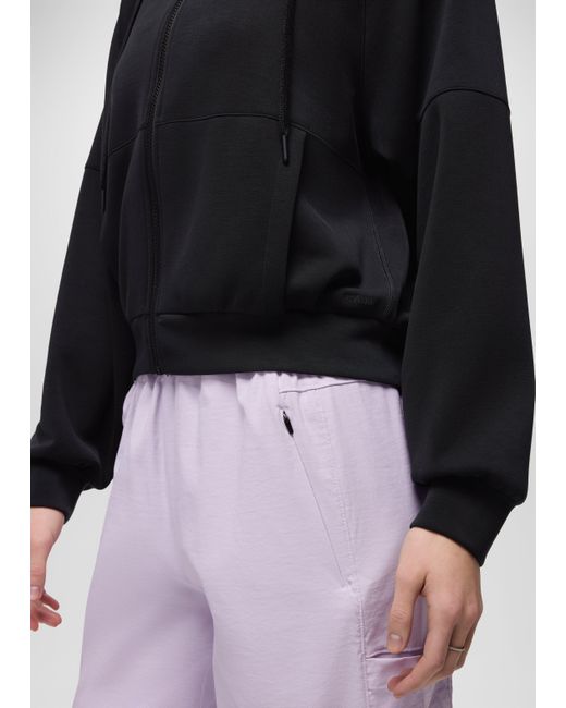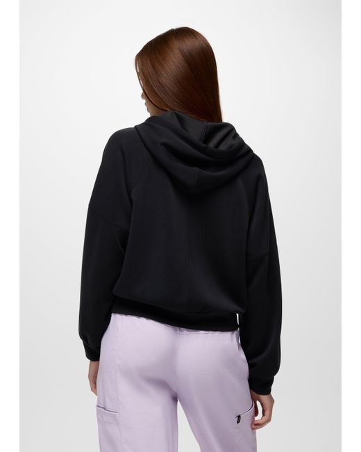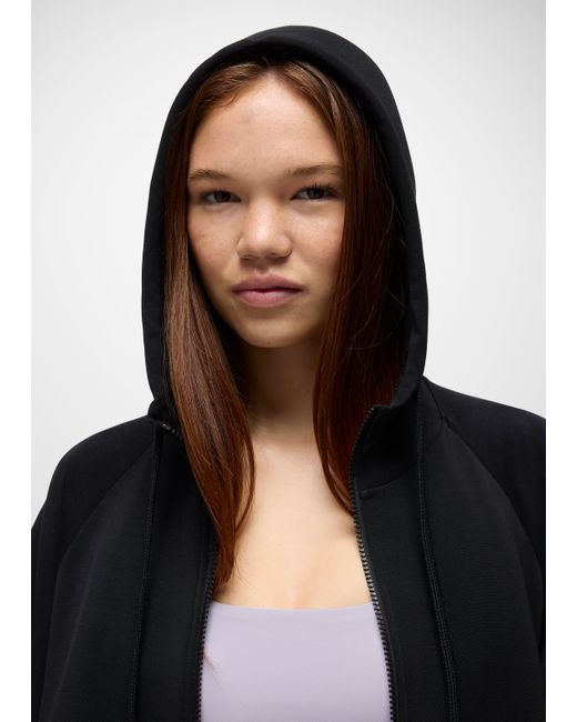 Easy, relaxed full-zip hoodie in a buttery-soft TENCELâ„¢-blend knit. Get ready to wear this one everywhere; the Shea Soft Full Zip is a buttery-soft full-zip hoodie destined for travel days and self-care nights. It has a just-right relaxed fit, drawcord hood, and elevated seam details. Made with a dreamy blend of TENCELâ„¢ modal and recycled polyester, this luxe layering piece makes a perfect match with our Shea Soft bottoms for full-body comfort. | Womens prAna Shea Soft Full Zip in Black, Size Large