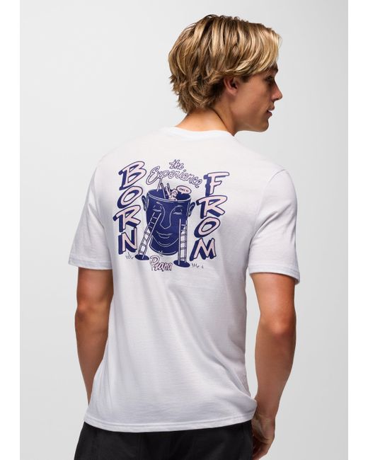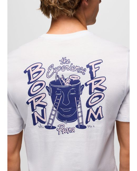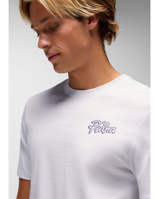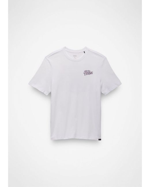 All organic cotton short-sleeve tee with original graphics and a standard fit. The prAna Open Your Mind Graphic Tee is a standard-fit short sleeve with a classic crewneck. Made from 100% organic cotton, it features adventure-inspired graphics on the front left chest and center back. | Mens prAna Open Your Mind Graphic Tee in White, Size Large