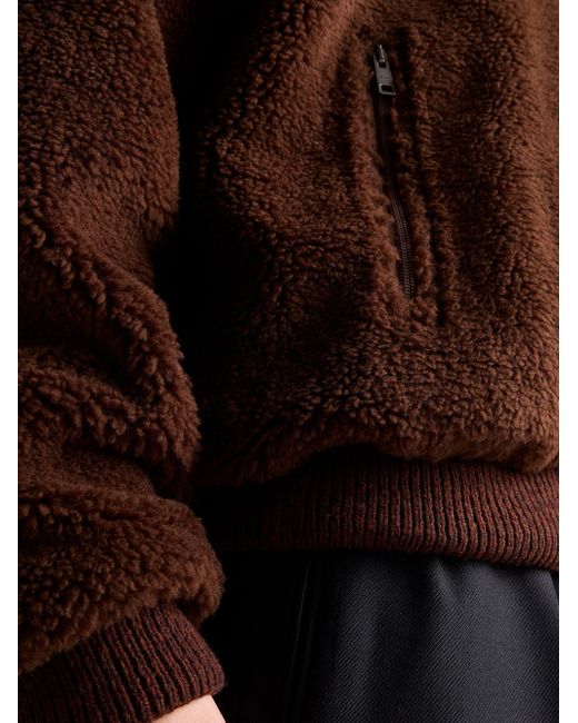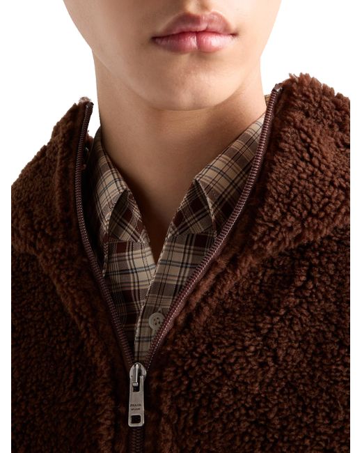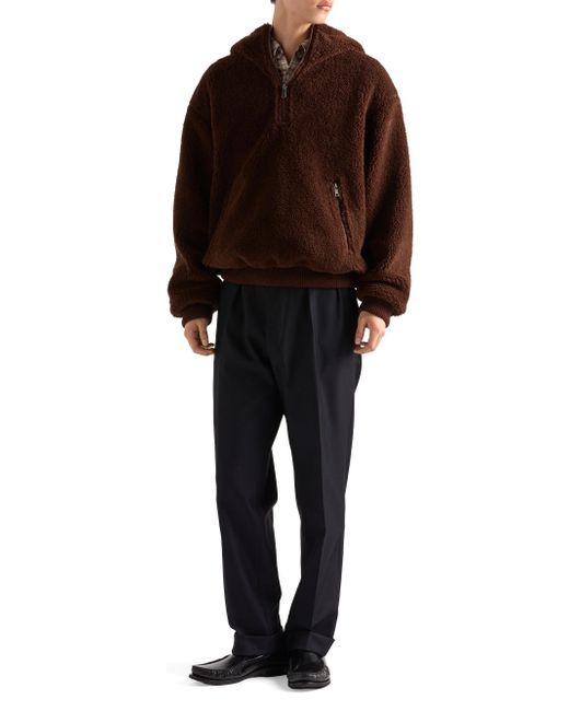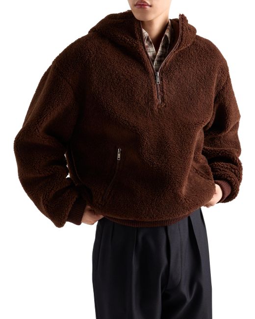 Oversized fit Stand-up collar with hood Straight sleeve Half-zipper closure Visible zipper pockets Ribbed knit cuff Drop shoulder Straight knit hem Lined Knit triangle logo on the back Imported 52% Fleece Wool, 48% Nylon. Lsd Rtw - Prada Rtw > Prada > Saks Fifth Avenue. Prada. Color: Brown. Size: Medium.
