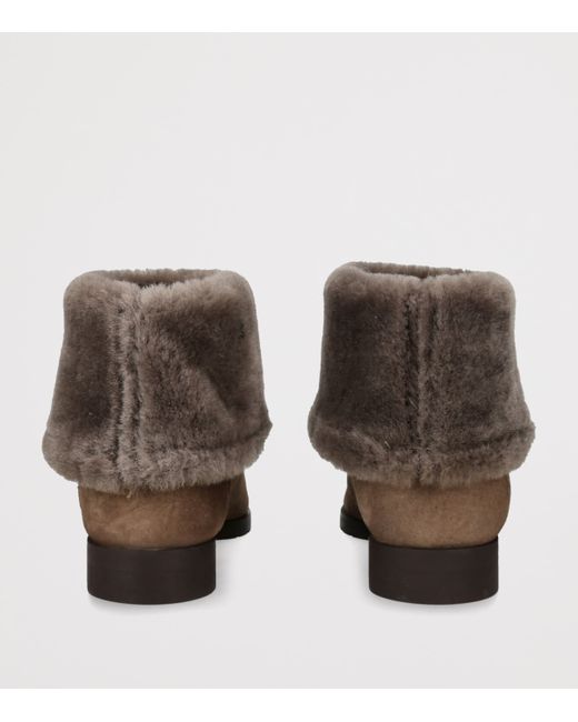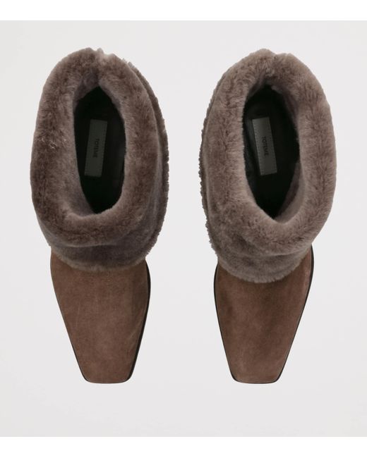 toteme's journey on the fashion landscape began in 2014 as a venture to elevate the uniform of the contemporary woman, and these ankle boots withhold that vision 11 years later. Primed to be a staple for your wintery outfits, they are rendered from indulgently soft shearling with a suede exterior to add tactility to the minimalist frame.