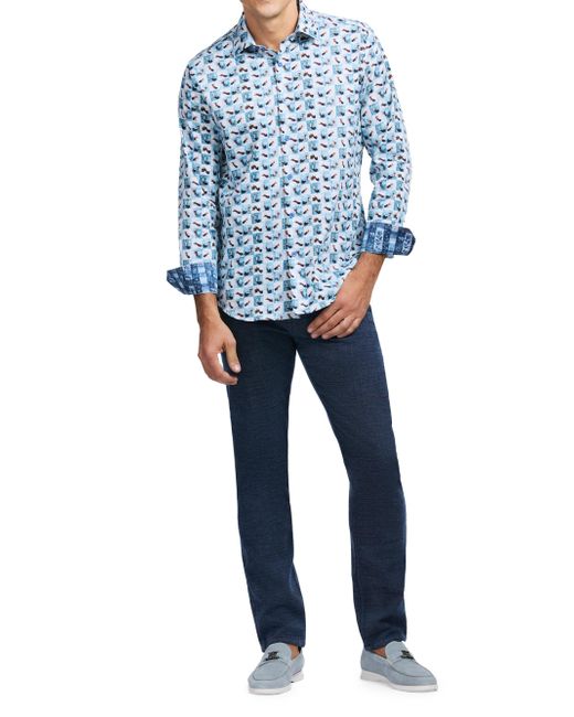 The Toasted button-front Shirt from Robert Graham features a whimsical checkered toast print with a contrast at the collar and cuffs. This style is crafted of stretch satin cotton and includes a point collar, button cuffs, and a shirttail hem. Point collar Long sleeves, button cuffs Button-front closure Shirttail hem 97% cotton/3% elastane Machine wash Imported SIZE & FIT About 26" from shoulder to hem Model measurements: 6'2" tall, 40" chest Model is wearing a US size Medium. Mens Modern Coll & Outer - Contemp Classic Collecti > Robert Graham > Saks Fifth Avenue. Robert Graham. Size: Small.