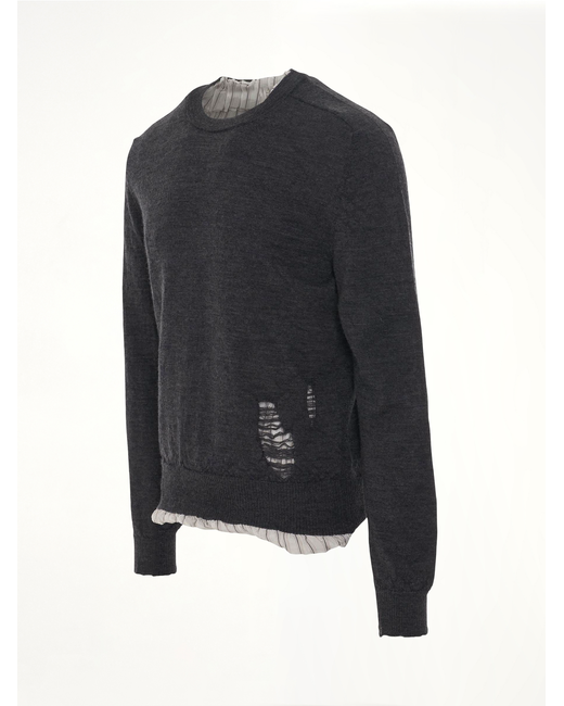 Long sleeves distressed wool jumper in dark grey with fine knit, ripped detailing, ruched detailing and crew neck Composition: 100% Cotton Fine knit Ripped detailing Ruched detailing Crew neck Long sleeves Straight hem SKU: SI1HA0005S17784 860