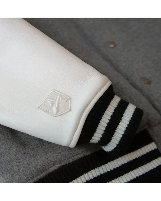 Made from high-quality leather with a softshell fabric type, this mid-length jacket features a button closure and embroidered logo accents.