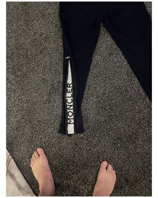 The Moncler Men's Jogger Bottoms in navy blue, size large, are perfect for winter activewear. Made from cotton, these trousers feature a drawstring closure and a comfortable jogger style. Ideal for walking in colder weather, they are a stylish and practical addition to any man's wardrobe. The iconic Moncler brand ensures quality and performance, making these bottoms a must-have for the season.