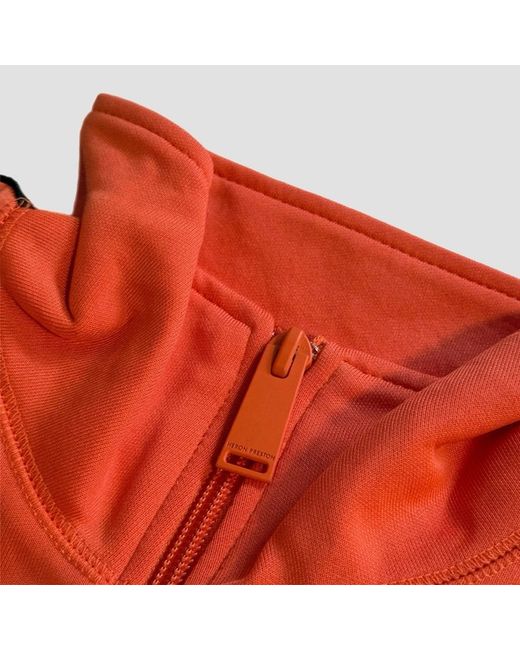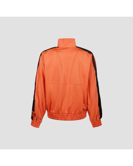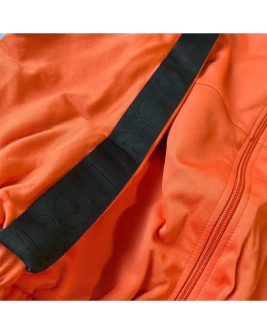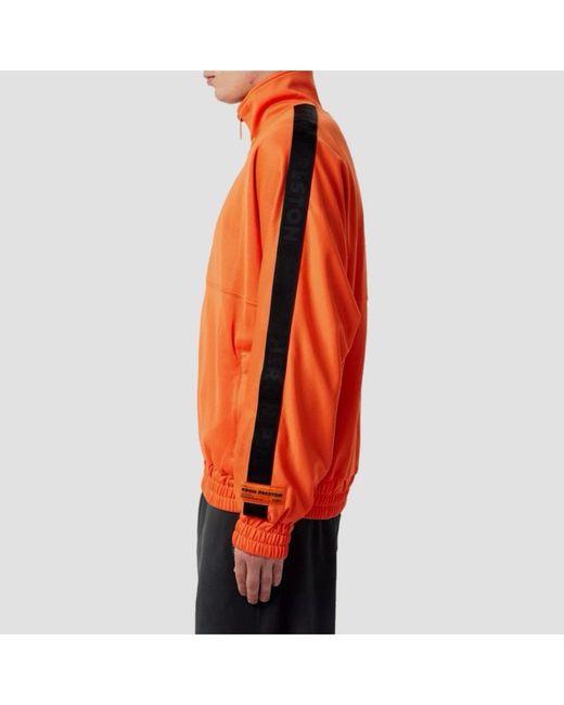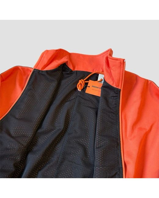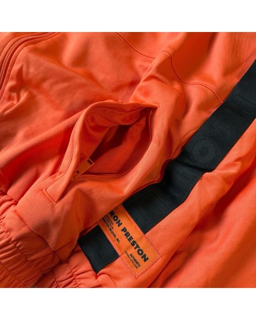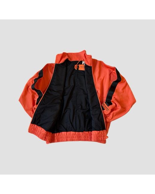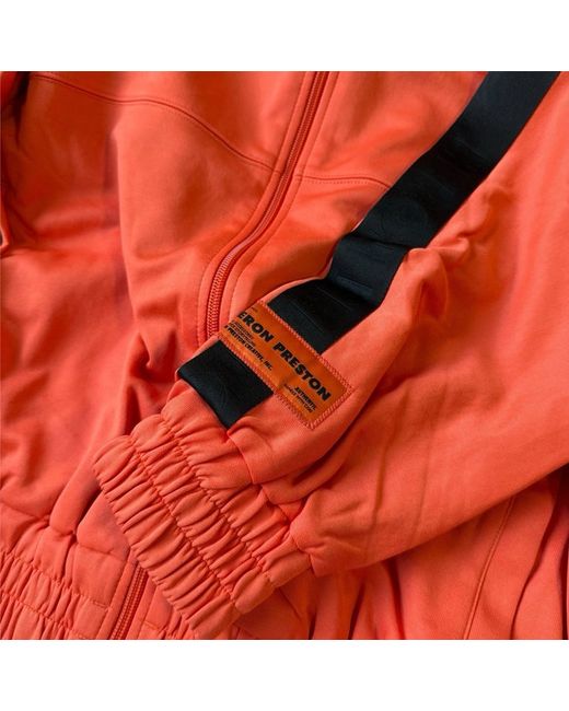 Heron Preston Tracktop Logo Jacket • Orange with black logo tape detailing down the arms. • HP patch to arm. • Full zip with side zip pockets. • Mesh lining for breathability. • Elasticated waistband & cuffs. • Made in Portugal. • Size Small, fits slightly bigger more like a Medium. • New with tags in original packaging. MEASUREMENTS Chest - 48” Arm Length - 20” Length (From base of collar) - 24.5”