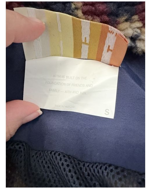 The Kith Pinehurst Floral Sherpa Fleece Jacket in size Large is a stylish and cozy outerwear option for men. This multicoloured jacket features a quilted design, perfect for the winter season. With its fleece fabric type and sherpa outer shell material, it provides warmth and comfort for casual occasions. The brand, Kith, is known for its quality and unique style, making this jacket a fashionable choice for those looking for a versatile and on-trend addition to their wardrobe.