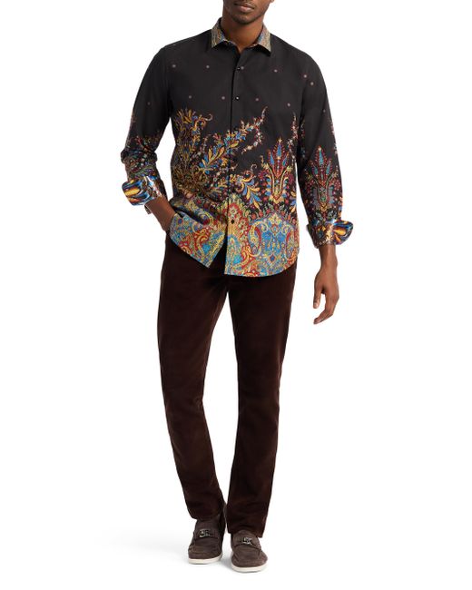 Crafted of cotton, the Taj Mahal shirt from Robert Graham features a vibrant paisley motif inspired by the legendary pietra dura art of the Taj Mahal. This piece is styled with a point collar, a button-front closure, and silk brocade trim at the collar and cuff. Point collar Long sleeves, button cuffs Shirttail hem Button-front closure 100% cotton Dry clean Imported SIZE & FIT Model measurements: 6'2" tall, 40" chest, 31" waist Model is wearing a US size Medium. Mens Modern Coll & Outer - Contemp Classic Collecti > Robert Graham > Saks Fifth Avenue. Robert Graham. Size: Small.