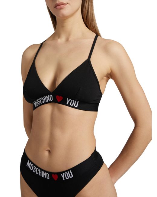 From the Moschino Intimo Donna Collection. Crafted of stretch cotton, this triangle bra is elevated by 'Moschino Heart You' logo tape trim and an adjustable back hook-and-eye closure. V-neck Adjustable spaghetti straps Elasticized underbust band Back hook-and-eye closure 95% cotton/5% elastane Machine wash Imported SIZE & FIT This style is constructed in a stretch fabric for a slim fit About 10" from shoulder to hem Bust, about 24" Model measurements: 5'10" tall Model is wearing a US size 4 Please Note: Compared to the Saks Size Guide, this style measures small. Lingerie - Designer Foundations > Moschino > Saks Fifth Avenue. Moschino. Color: Black. Size: XS.