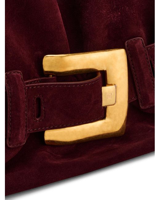 Crafted of luxurious suede, the Medium Anthem shoulder bag from Balmain is styled with a goldtone buckle belt that wraps around the silhouette. Top handle Interior: one card slot Magnetic closure Suede Made in Italy SIZE About: 17"W x 10"H x 6"D ABOUT THE BRAND In 1945, founder Pierre Balmain made his well-received debut of opulent, ultra-feminine designs. Known today for its iconic blazers, impeccably constructed dresses and signature fragrances, the brand continues its dedication to masterful tailoring and elegance under the helm of Creative Director Olivier Rousteing. Handbags - Advanced Designer Handba > Balmain > Saks Fifth Avenue. Balmain. Color: Bordeaux.