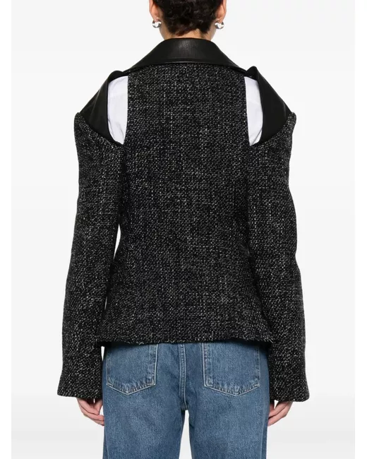 black faux-leather panels front zip fastening wide lapels long sleeves straight hem