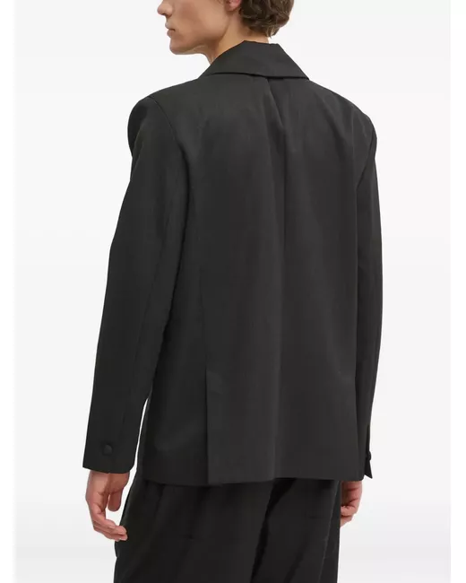 black single-breasted button fastening notched lapels flap pockets long sleeves