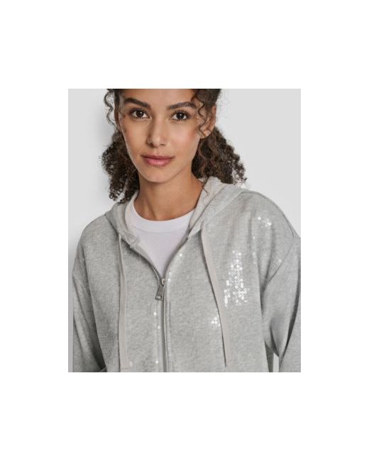 Offering all-day comfort, this Dkny Jeans jacket is a must-have for your seasonal collection. Featuring a drawstring hood, relaxed fit, and long sleeves, it perfectly blends sparkle with casual ease.