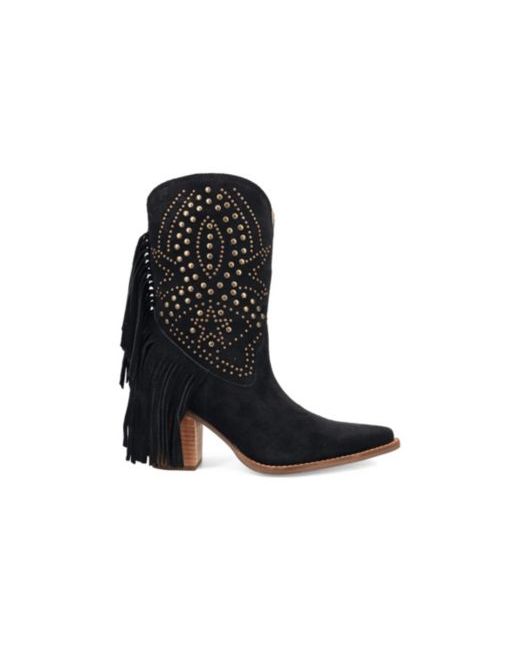 Own the spotlight with the Star Power boot, where edgy studs and shimmering stars meet playful fringe cascading over the heel. This bold design mixes movement and sparkle to create an unforgettable look that commands attention from every angle. Perfect for those who live to shine loud and proud.