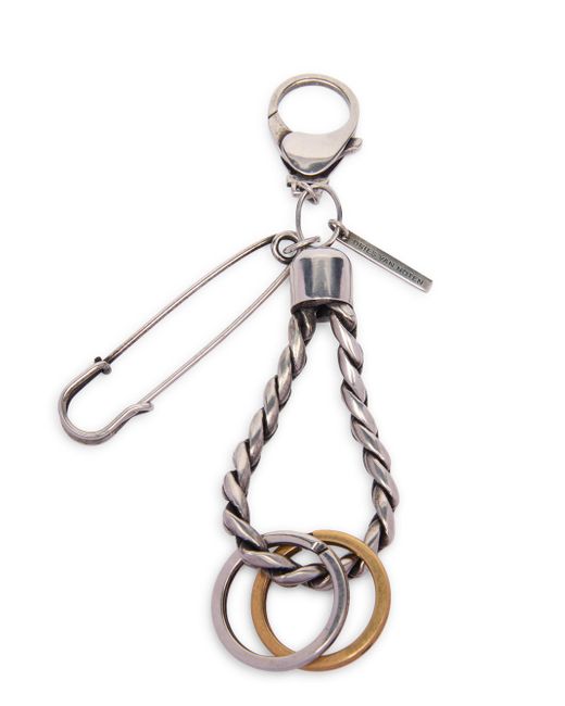 Made in Italy, this Dries Van Noten keyring is crafted of brass featuring a silvertone rope and antiqued goldtone ring. Brass Made in Italy ABOUT THE BRAND Designer Dries Van Noten was part of the Antwerp Six, an influential group of fashion designers who graduated from the Royal Academy of Fine Arts in Antwerp in the 1980s. Van Noten is known for his intellectual aesthetic, using artful textiles and lush prints to craft the brand's clothing, shoes and accessories. Men Accessories - Designer Accessories > Dries Van Noten > Saks Fifth Avenue. Dries Van Noten. Color: Palladium.