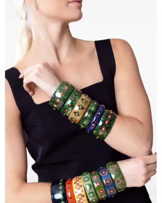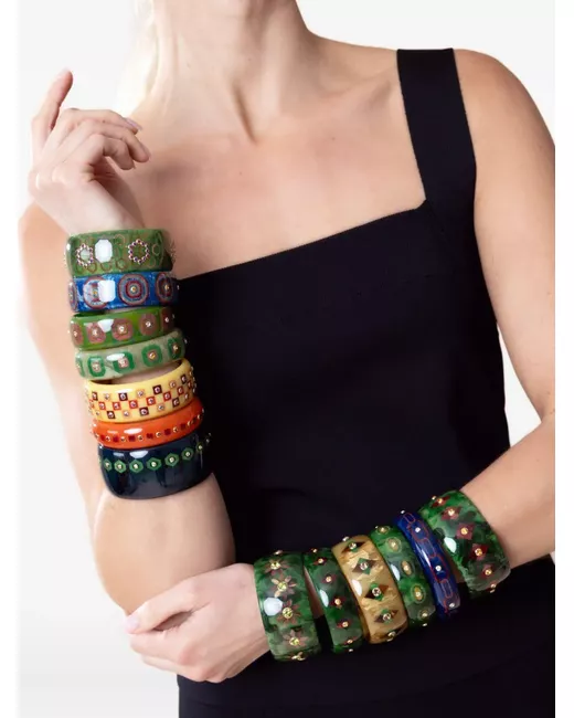 Women's Yellow 18K gold multi-stone Bakelite bangle