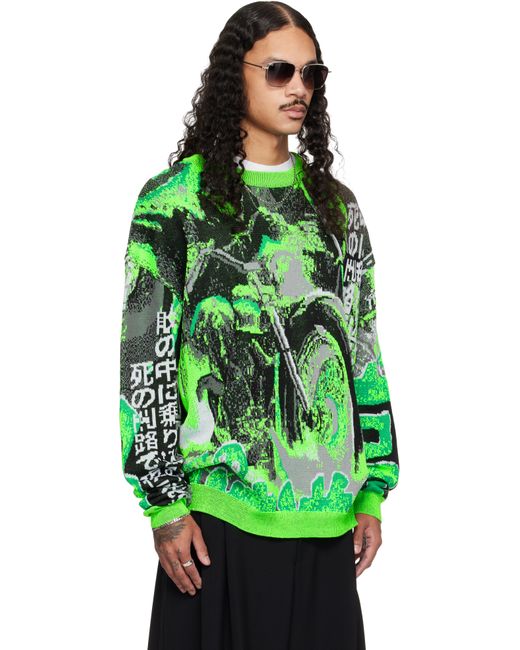 Knit cotton- and recycled polyester-blend sweater. · Jacquard graphic pattern throughout · Rib-knit crewneck, hem, and cuffs · Dropped shoulders Supplier color: Acid green/Black