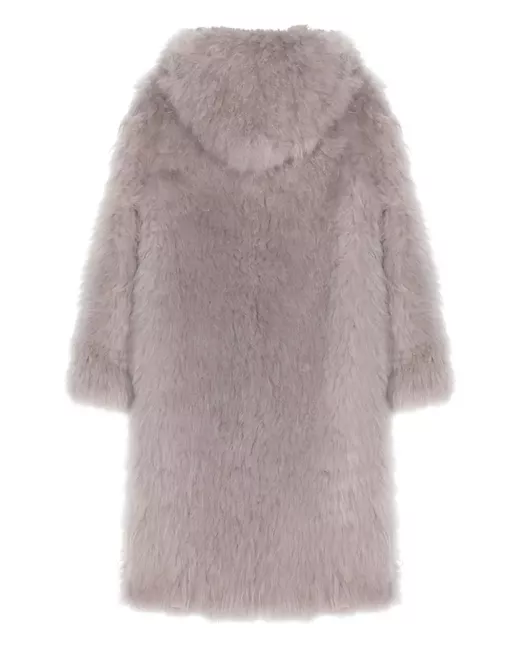 light grey cashmere shearling shawl collar concealed front press-stud fastening long sleeves two side slit pockets straight hem mid-length satin lining