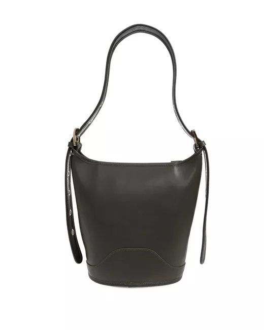 khaki calf leather studded shoulder strap zip fastening internal pocket