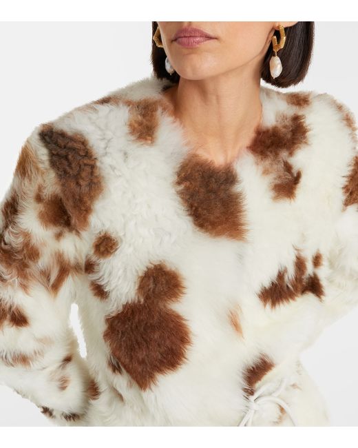 Material: 100% shearling. Care instructions: specialist clean. Made in Turkey. Designer color name: Cream. Item color: white, brown. Lining: 100% sheep leather. Contains non-textile parts of animal origin. Detachable belt. Pockets: side slit pockets. Closure: hook-fastening front. Shearling.