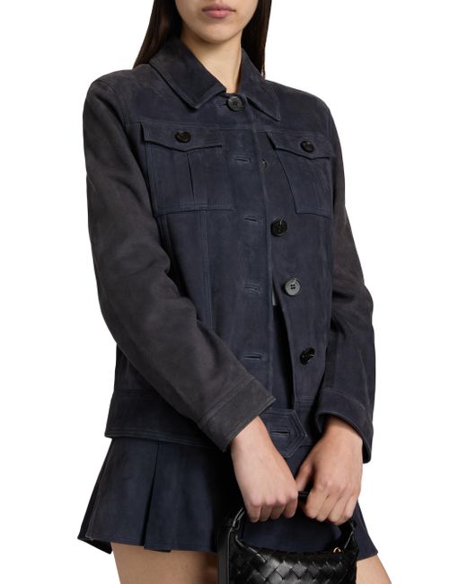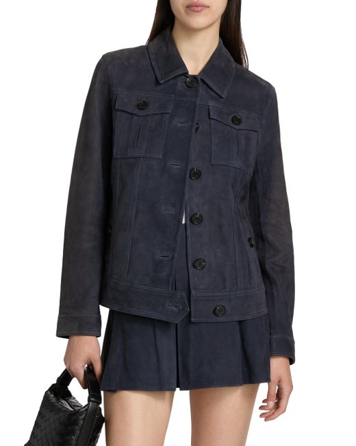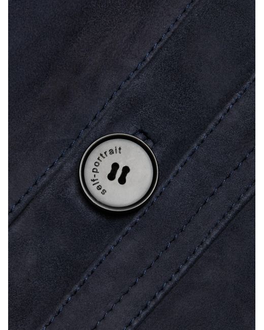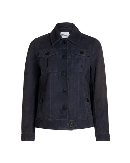 Crafted of soft suede, Self Portrait's jacket is cut in a single-breasted silhouette and features a spread collar and button-through flap pockets at the chest. Spread collar Long sleeves, button cuffs Chest button-though patch pockets Side button-though welt pockets Button-front closure 100% suede Lining: 100% polyester Dry clean by leather specialist Imported SIZE & FIT About 25" from shoulder to hem Model measurements: 5'10" tall Model is wearing a US size 4 ABOUT THE BRAND Self-Portrait was founded in 2013 by Malaysian designer Han Chong, a Central Saint Martins graduate. The contemporary London-based label, often spotted on the red carpet, features easy evening pieces with signature details like eyelet lace, ruffles and sheer panels. Contemporary Sportswear - Contemporary Collections > Self-portrait > Saks Fifth Avenue. Self-Portrait. Color: Navy. Size: 2.