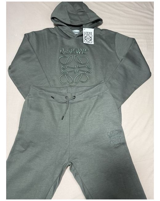 The Track Suite Grey Loewe is a stylish men's sweatshirt set perfect for activewear occasions. Made from 100% cotton in a sleek grey colour, this Loewe tracksuit offers both comfort and style. The size M ensures a comfortable fit, making it ideal for casual wear or workouts. The classic design of the sweatsuit makes it a versatile addition to any wardrobe, suitable for various activities and settings.