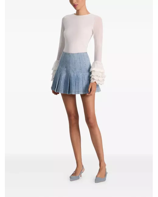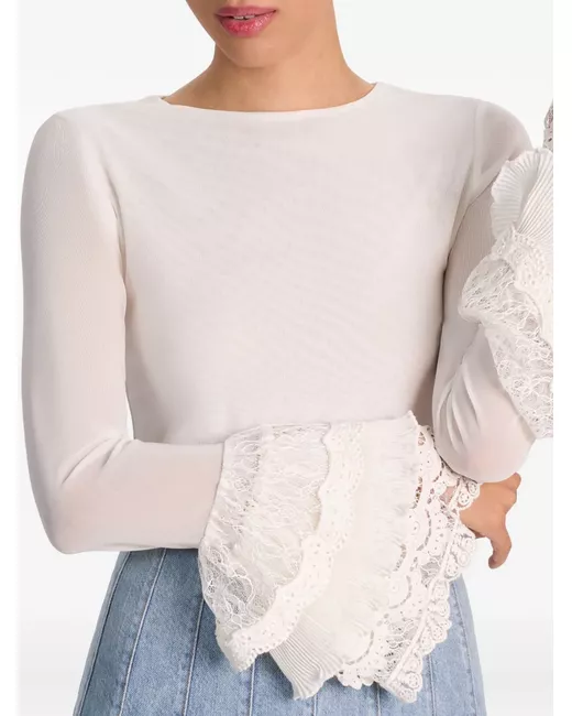 off-white lace detail ruffle cuffs long sleeves round neck zip fastening