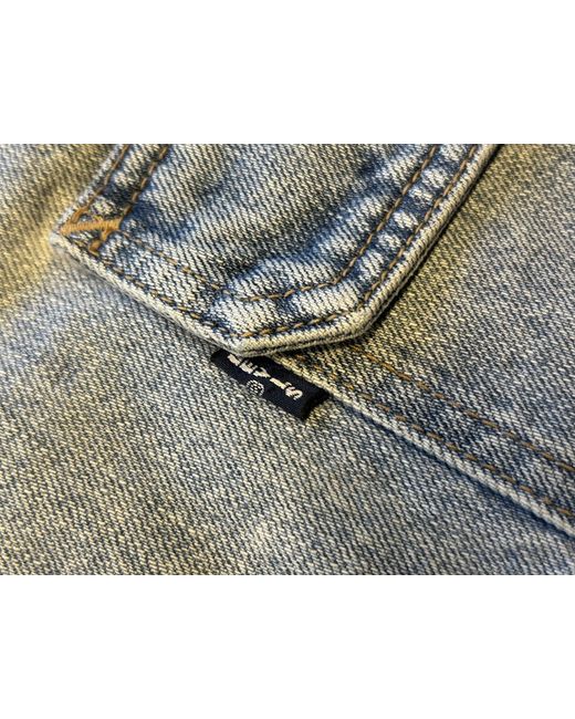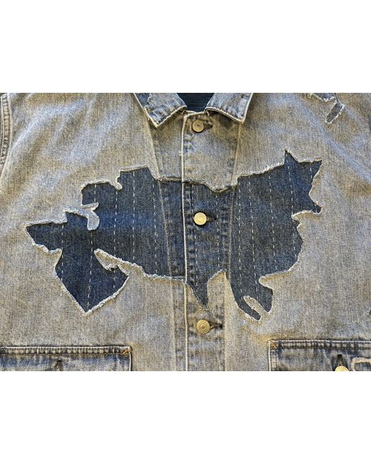 A distinctive rare piece featuring adistressed finish and aworld map patch design, giving it a worn-in, well-travelled look straight from the factory. This is also signified by the blue Levi's tab instead of the original red and the black leather patch label.
