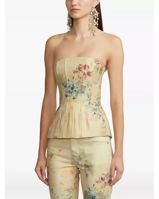 beige floral pattern strapless boned zip fastening cotton