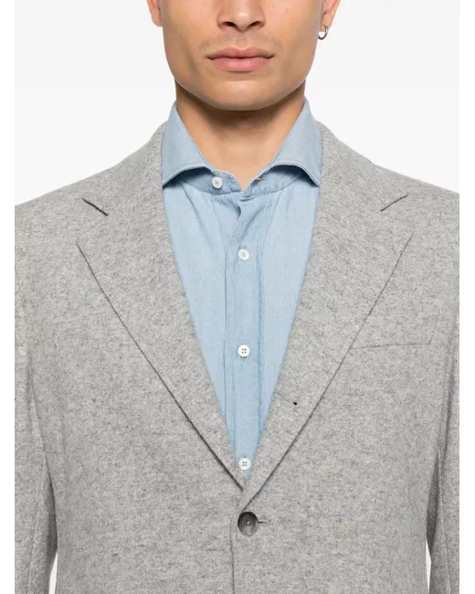 light grey flap pockets button fastening notched lapels long sleeves single-breasted
