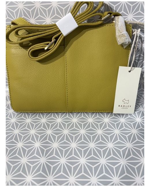 BNWT Womens Radley Green Leather Cross Body Strap Multiple Zip Pocket Handbag RRP £109 Brand new never used