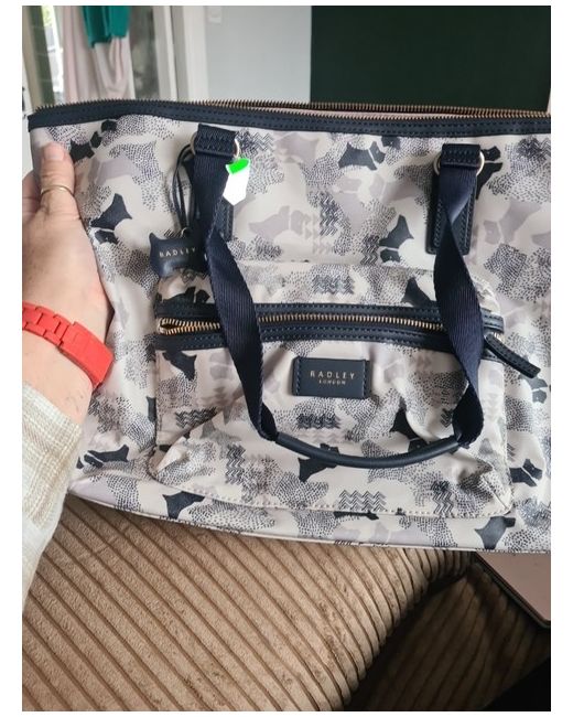 ☆◇☆◇FABULOUS XMAS GIFT IDEA ◇☆◇☆ The Radley laminated canvas data bag is a stylish and practical tote designed for women. With a large size of 34cm in width, 30cm in height, and 14cm in depth, this bag is perfect for carrying a laptop or tablet. The animal print pattern and multicolor exterior add a fun and trendy touch. The zip closure and press stud offer security for your belongings, while the inner and outer pockets provide extra storage space. The bag also includes a charming accessory and a handle keeper, making it both functional and fashionable for everyday use.