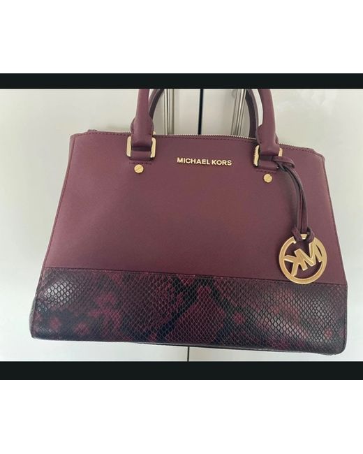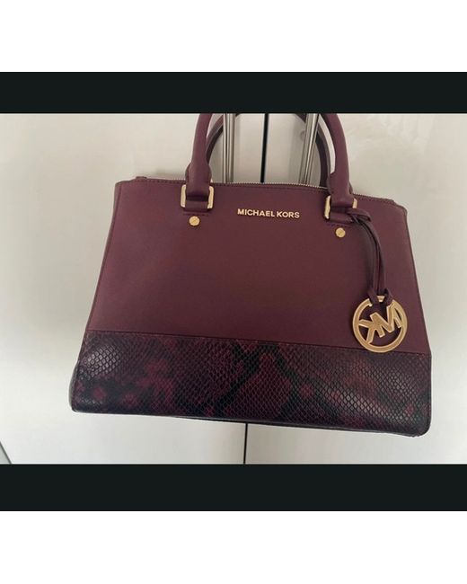 This Michael Kors handbag features a striking snake effect design, perfect for adding a touch of glamour to any outfit. The burgundy leather exterior with black lining exudes sophistication, while the top handle design adds a chic touch. The burgundy leather handle/strap complements the overall look, making it a versatile and luxurious accessory for any occasion. Perfect for the modern woman who wants to make a statement with her handbag.