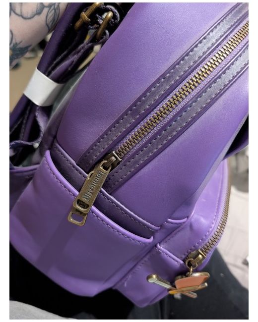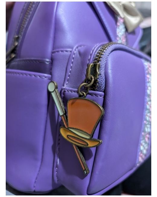 Take a trip down memory lane with this rare Loungefly Willy Wonka Cosplay Mini Backpack, perfect for any fan of the classic film. The exterior is made of faux leather and polyurethane in a vibrant shade of purple, featuring a zip closure and comfortable faux leather straps. Inside, this backpack offers ample room for your essentials, making it a stylish and practical choice for any occasion. With its unique character and style, this backpack is a must-have for any Willy Wonka enthusiast. smoke free home bought from reputable website