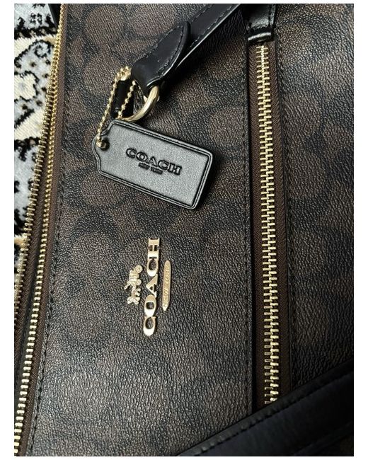 The Coach Tote Bag stylish leather accessories perfect for a casual occasion. The rectangular shape with zip closure and double handles make them practical and easy to carry. The brown exterior colour adds a touch of sophistication to any outfit. With the iconic Coach branding and high-quality leather material, these accessories are a must-have for any fashion-forward woman looking to add a touch of luxury to her everyday style.