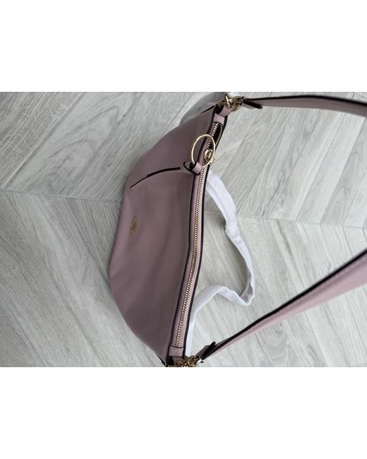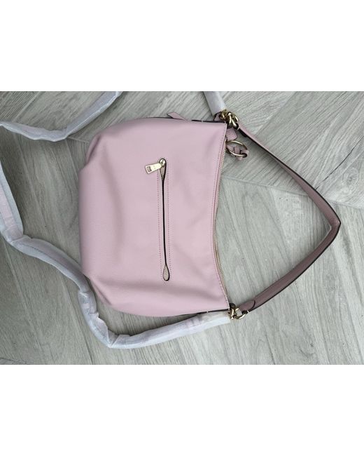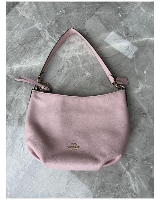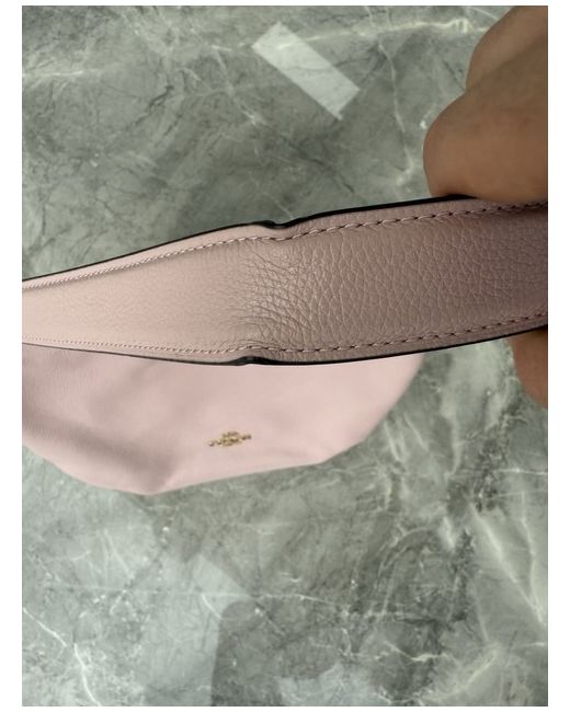 Brand: Coach Model: 91029 Skylar Hobo Color: IM/Blossom (Light Pink) Material: Pebble Leather Hardware: Gold-tone Style: Shoulder Bag / Hobo Closure: Zip-top closure Strap: Fixed shoulder strap; optional detachable longer strap allows for crossbody wear (not included) Interior: Fabric lining with zip and slip pockets Logo: Gold Coach logo on front Carry Options: Can be worn on the shoulder or as a crossbody with insertable strap Condition: Very good overall condition. Handle shows slight stretching from use. Retail Price: Typically retails for £300 Height:8.5 inches Width: 12.5 inches Depth: 8.5 inches See images of imperfection: stretch in leather handle