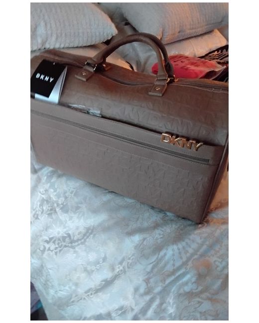 The DKNY Large Walnut Holdall Weekend Bag is a stylish and practical accessory for women on the go. This duffle bag features the iconic DKNY logo and comes in a rich brown exterior colour made from durable polyester material. The generous size and included shoulder strap make it perfect for weekend getaways or extended travel, while the classic design adds a touch of sophistication to any outfit. Whether you're heading to the beach, the spa, or simply going on a shopping trip, this new with tags DKNY bag is sure to make a statement.