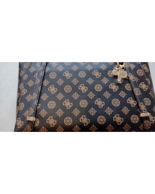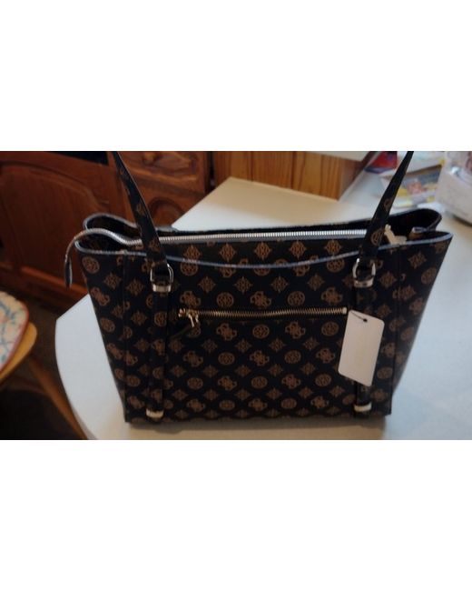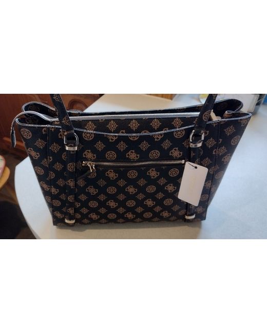 Guess bag, new with tags , dust bag and original packaging. Size 15 x 11 x 4 inches. Zip across the top and on Inside and outside. 2 sections in zipped part of bag, and another section with stud fastening.