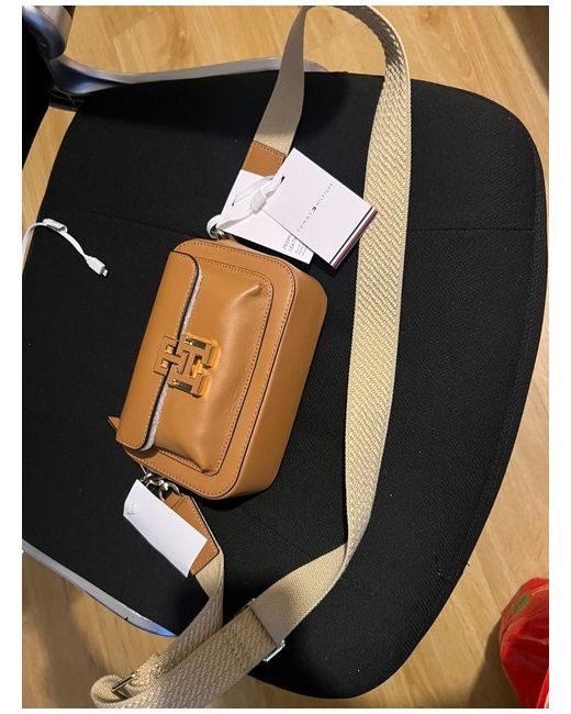 The Tommy Hilfiger Women's Bag is a stylish and practical accessory for casual occasions. Made with leather in a solid brown colour, this medium-sized rectangular bag features a zip closure and an adjustable crossbody strap for convenience. The gold hardware adds a touch of luxury, while the detachable strap offers versatility in how you carry the bag. This designer handbag from Tommy Hilfiger is a fashionable choice for women looking for a high-quality and on-trend accessory.