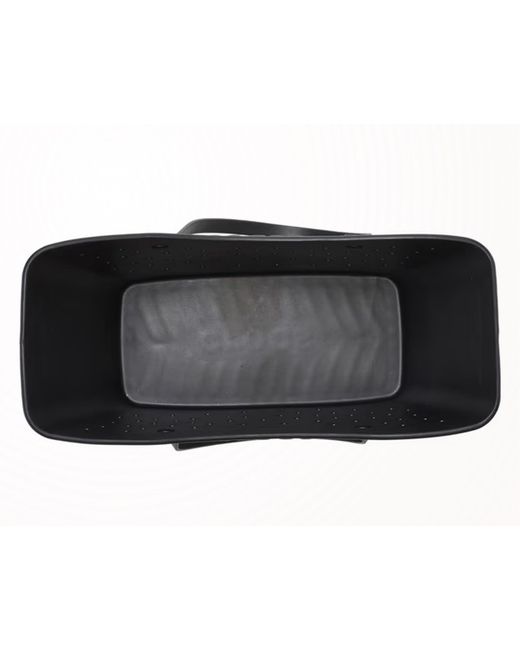 The Crocs Large black Tote is a stylish and practical accessory for women. With a rectangular shape and double black handles, this large tote is perfect for everyday use. Made from waterproof Croslite EVA material, it is both durable and versatile. The classic black exterior and lining make it a timeless choice, while the brand's signature Crocs design adds a fun touch to any outfit. This tote is a must-have for those looking for a spacious and elegant handbag for all their essentials.