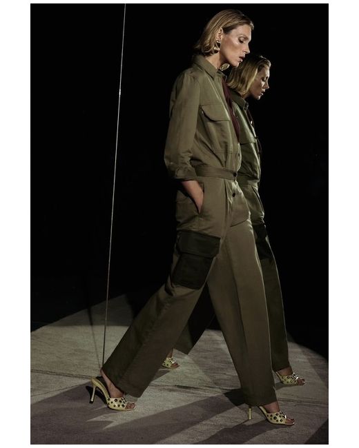 Greenish Gabardine Jumpsuit Button Front BNWT S
