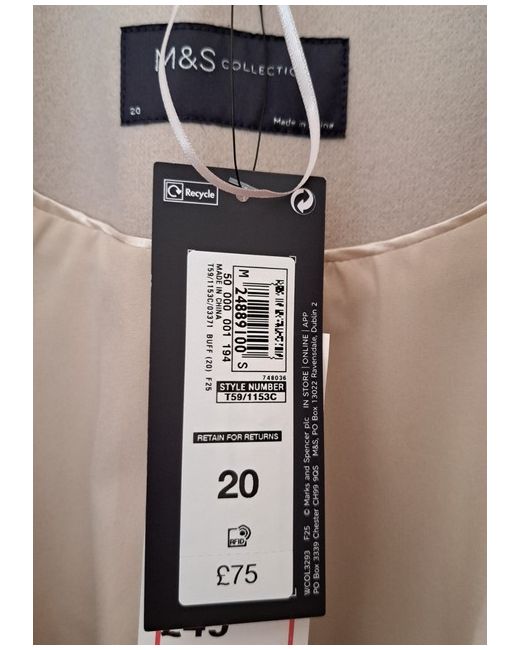 The pockets are still stitched closed. The photographs show it slightly more beige than it is, the closest to the actual colour is the 5th photo, the front of the M&S label.