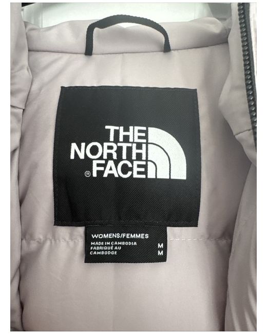 North face puffer jacket, in moonstone grey which has a touch of pale mauve to it, brand new with tags and never worn