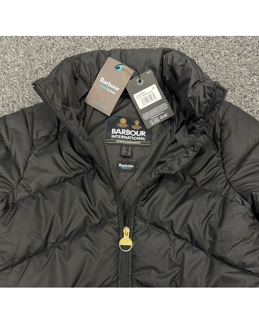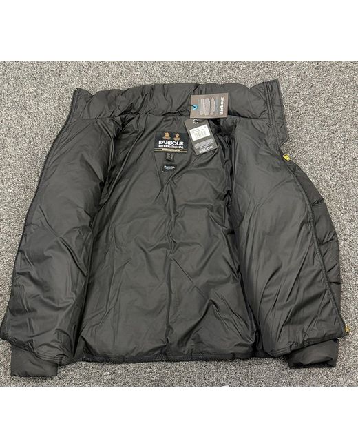 MACKNEY QUILTED PUFFER JACKET. BLACK - UK10. BARBOUR INTERNATIONAL. Classic quilted puffer styling with modern detailing. Filling: 100% Polyester. Machine washable. Regular fit.