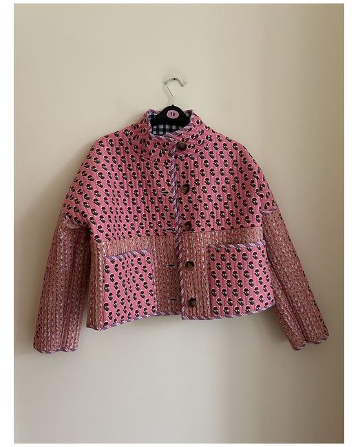 Brand new There are a few tiny pink marks on the back of the collar- see last pic. Not very noticeable. Think the colour from the reversible side has seeped through The jacket has warm quilting, with a cotton shell and a button-up fastening, finished with a tall collar and patch pockets. Regular fit 2-in-1 Reversible Floral and check print Quilted Cotton shell Machine washable. Main 100% Cotton. Wadding 100% Polyester.