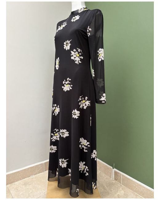 SIZE: UK12. This is a gorgeous Black Daisy Stretch Maxi Dress by Mint Velvet. The outer layer is a sheer black net with an abstract daisy design all over. The neck is sheer as are the full length sleeves and the body of the dress is fully lined.
