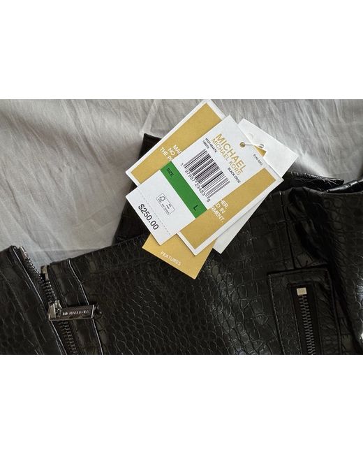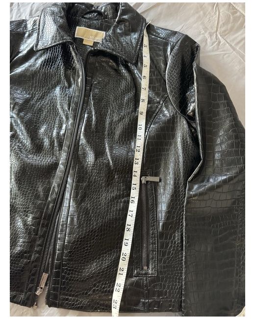 This Michael Kors Women's Leather Jacket in size L is a stylish and versatile addition to any wardrobe. Made from high-quality leather with a polyester insulation material, it is perfect for the winter season. The classic black colour and biker style give it a trendy and designer look, suitable for casual occasions. The jacket features a zip closure . With its regular fit and quality construction, this jacket is a must-have for any fashion-forward woman.