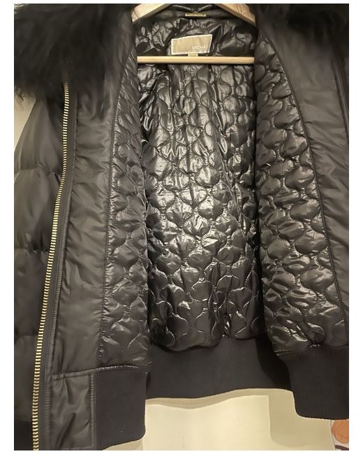 The jacket was lying in the closet for about a year . The Michael Kors Women's Black Puffer Bomber Jacket in size L is a stylish and versatile outerwear option for the colder seasons. Made from polyester with a softshell fabric type, this short jacket features Mongolian lamb fur detailing, adding a touch of luxury to the casual occasion it is designed for. The regular fit and machine washable care make it both comfortable and convenient for everyday wear. Perfect for winter, autumn, and spring, this bomber jacket from the renowned brand Michael Kors is a must-have addition to any woman's wardrobe.